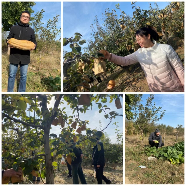 上午10时许,大家来到郑州市鹿鸣山庄,这里风景优美,空气清新,果树丰盈。这里有秋梨、南瓜、萝卜等多种果蔬,老师们一遍采摘,一遍感受丰收的喜悦,接受大自然的馈赠。活动间隙,大家还组织开展了篮球投篮、跳绳、滚铁环、拔河等一系列趣味游戏,进一步增强老师之间的交流与合作。