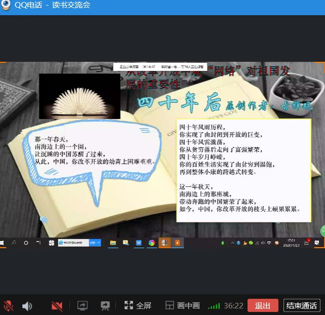 2020年4月23日下午4:00-6:30,第二十四个“世界读书日”,LOL比分 以QQ视频的方式成功举办网上读书分享会。