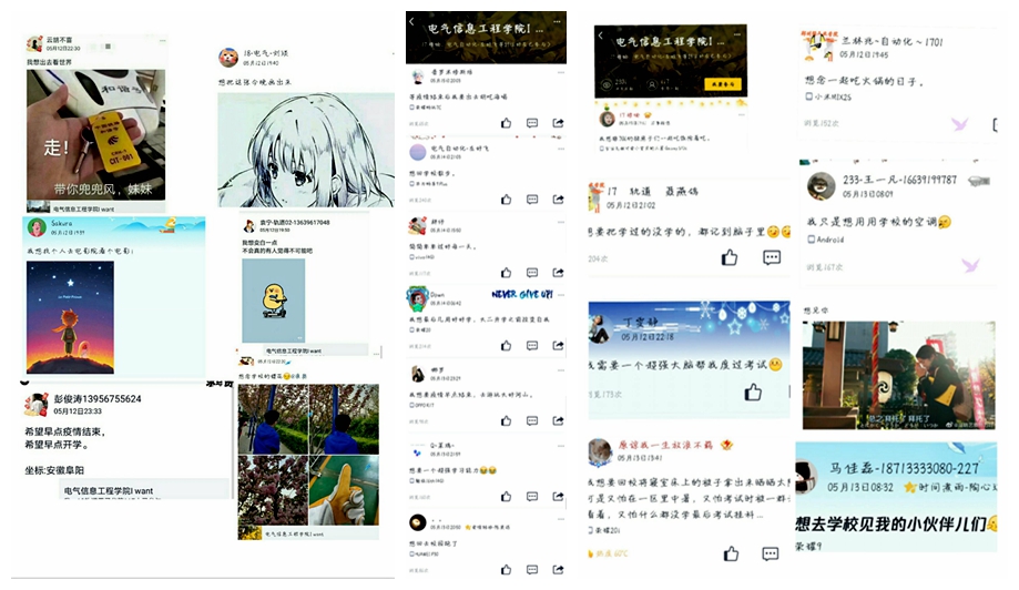 本次活动通过QQ平台发布开展。同学们积极参与话题讨论,畅谈自己在疫情期间的所见所闻所感,表达出自己想做的事,想说的话,想见的人。通过交流、表达,同学们的心态更加平和乐观、信念更加坚定执着。莫道浮云终蔽日,严冬过尽绽春蕾,我们终究会迎来摘下口罩,去呼吸花的芳香的一天。