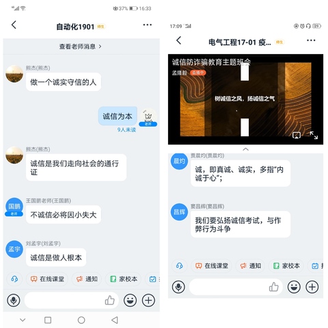 按照学校工作要求,结合LOL比分 实际情况,LOL比分 各年级辅导员充分利用钉钉、QQ视频会议等网络载体,对本班同学的诚信、征信、预防诈骗、远离不良贷款意识进行了强化警示教育。会上,各辅导员强调诚信是大学生立身为人、成长成才的必备品质。诚信不仅是一种品行,更是一种责任;不仅是一种道义,更是一种准则;就个人而言,诚信是高尚的人格力量。学生在申请国家助学贷款、国家助学金等国家资助项目时,应恪守诚信,如实填报申请材料,树立诚信观念,增强法律意识,及时履行国家助学贷款合同。同学们纷纷表示会在以后的工作与学习中处处做到诚信,为精彩的人生道路打下坚实的基础。