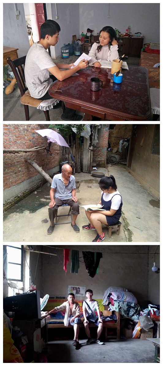 了解困难学生家庭情况、就业情况。各队员分别前往一位家庭困难学生的家中了解情况。这些困难的农村家庭培养子女成材不易,即便子女终于被大学录取,要交的学费、生活花费对于靠土地吃饭的他们也是重担。但所幸国家和高校有资助或贷款政策,在校期间可申请资助或无息贷款,这对于他们实在是解了燃眉之急。了解到由于一些特殊原因,这几位同学的就业之路没能走好,毕业后若干年也难以还清贷款,对于这些情况,各队员都认真做了记录。