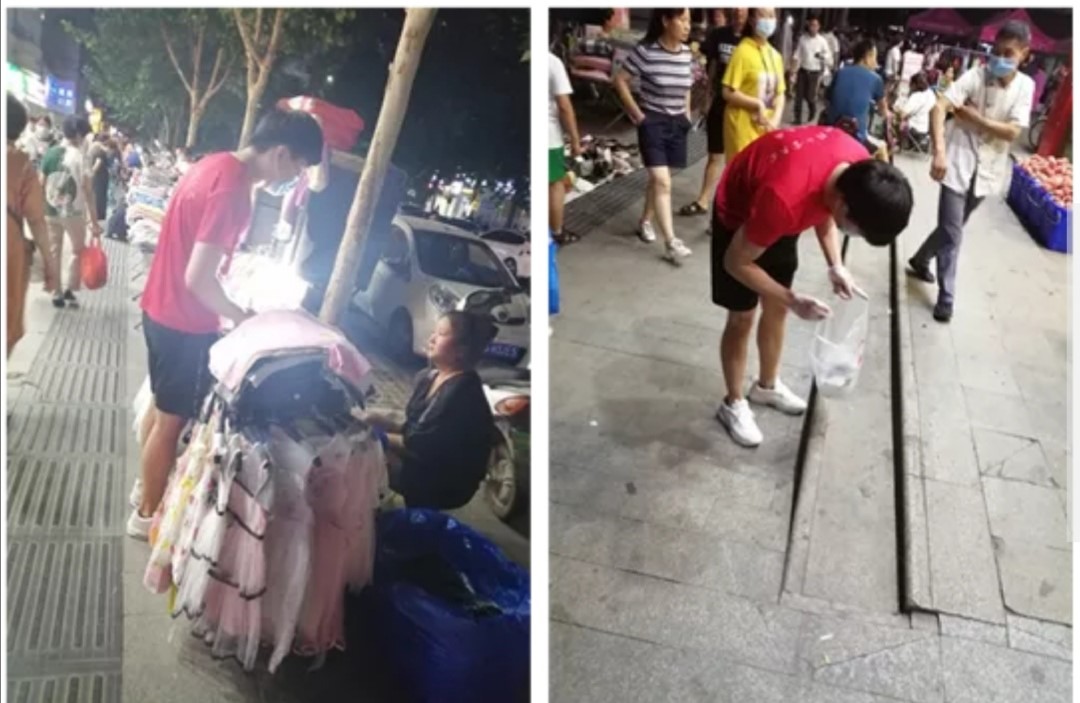 图为成员许志业在安阳市金街采访一位地摊小哥。小哥说:“摆摊就是为了在客流量多的地方延长我的营业时间,增加日常收入。”最后,成员还帮助摊主收摊,打扫周边环境卫生。中国青年网 杨奥 摄