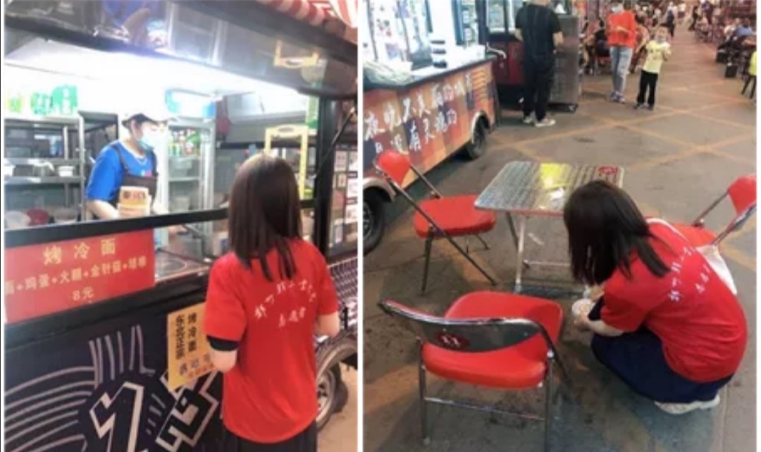 图为分队成员在济宁市任城区采访烤冷面摊主徐阿姨。我们还了解到,大多摊主出摊都是为了增加家庭收入。之后,成员帮助摊主收拾了周边卫生。中国青年网 杨奥 摄