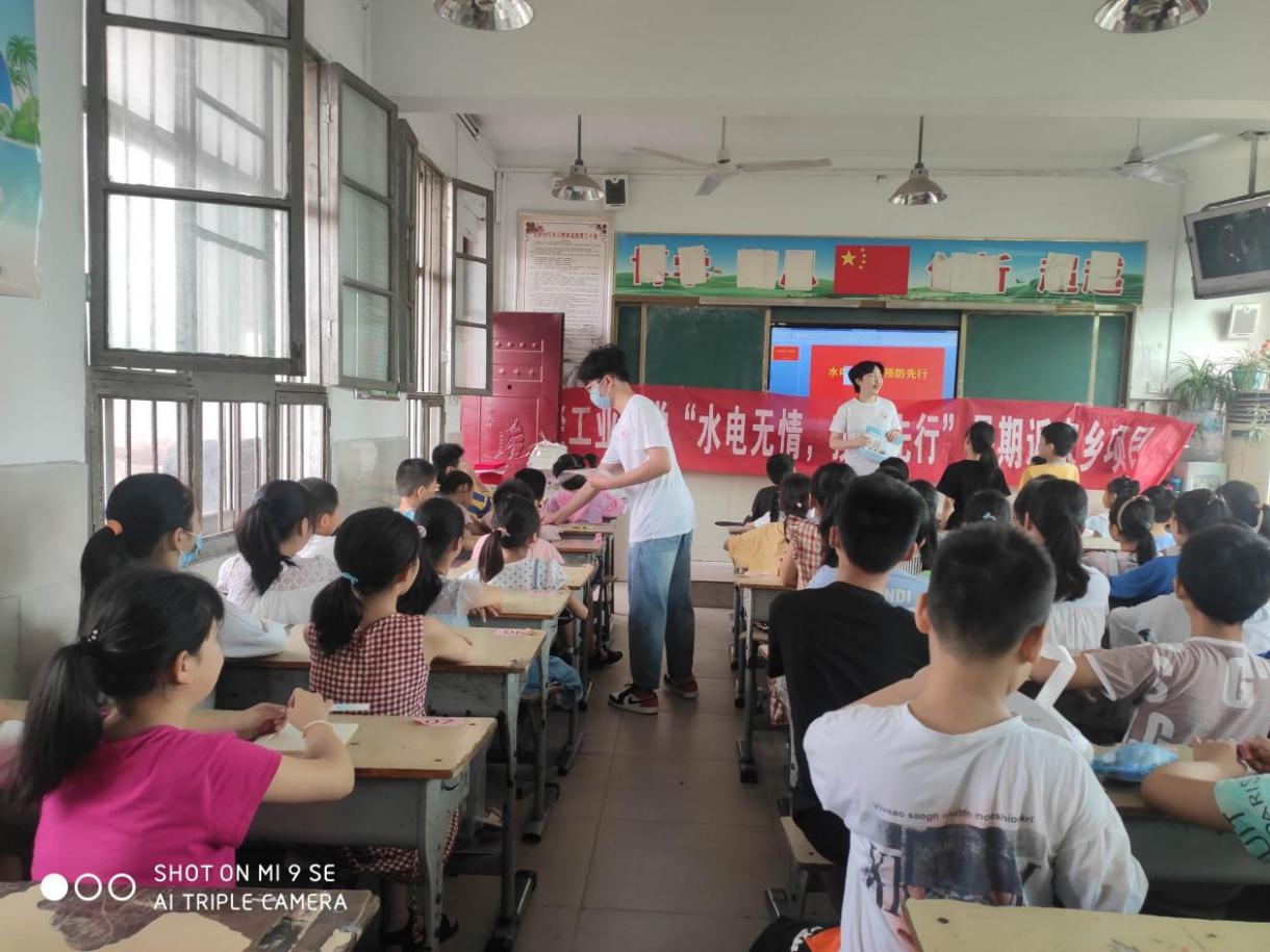 一位老大爷指着已经修好的颇有年代感的电风扇充满感情的说:“这个东西可有年头了,就是舍不得扔,毕竟用了那么多年了……”旁边另一位老大爷听闻后也感慨地说:“在外面维修电器,光打开外壳就要十几元,换一个小零件最少也得好几元……这么热的天大学生们连饭都顾不上吃给我们修家电,还不要钱,真是活雷锋!”维修台上的待修物品一件件的减少,又一件件的增多。 骄阳似火,当天新安县的温度达到39度,在热浪的炙烤下,队员们有蹲有站,汗水从他们的额头滴落、颊背流下,虽然有帐篷,仍然被晒的通红。“能通电了,修好了!”“俺家电扇又能转了,真好!”……这样激动又欣喜的声音不时的响起,这是肯定,也是赞扬!队员们顾不上蹲的腿麻,顾不上晒得头晕,用满是油污的脏手抹一抹汗水,更加坚定了要把每一件送修物品修好送还到村民手中的决心。紧张工作之余,不断有小朋友们围过来,出于安全考虑,队员们在严守纪律禁止他们靠近的前提下,面对孩子们的求知若渴认真讲解,“这个是电阻丝,电水壶能烧水可全靠它……”,“这个是启动电容,负责控制电扇的电机正常运行……”。专业知识晦涩难懂,但求知的种子已经深植他们心中并将茁壮成长。同时,队员们利用精心制作的宣传海报,向村民们普及了家庭安全用电知识,以及常用电器的安全使用,预防了用电意外事故的发生。同时,同学们还向居民们提供了上门的家电义务维修工作,为许多不方便搬运电器的居民们提供了便利。