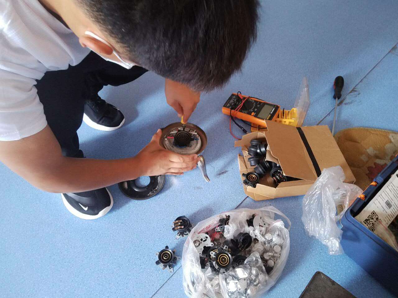 随着维修工作的开展,维修点陆续收到一些小家电。家电登记、损坏原因、标签序号、维修开据……维修工作紧张而有序的进行着。 由于疫情期间不能聚集,村民们只能把需要修理的家电放在维修点,在远处等待:有点着急,有满心盼望的自家的东西能快点修好。