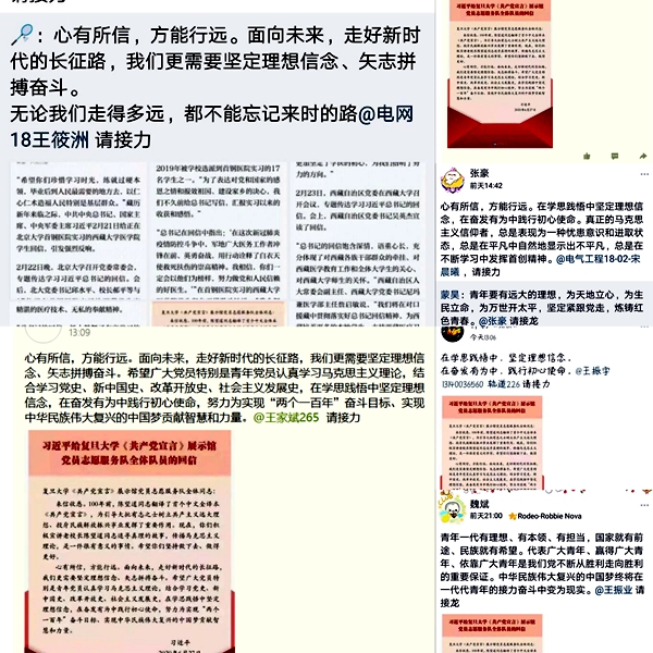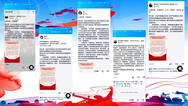 活动主要以三种形式开展。第一种是以直播的方式进行集中学习并进行小组研讨,第二种是以竞赛方式进行学习,第三种则是以空间打卡接龙的方式加深学习印象。18、19级全体同学都积极参与了本次活动,认真学习了习近平总书记的回信及其讲话精神。