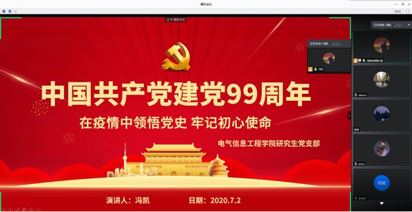 中国共产党从诞生至今,走过了99年的光辉历程。为庆祝我党成立99周年,2020年7月1日起,LOL比分 研究生党支部借助腾讯会议平台开展七一主题系列党日系列活动。李灏萱老师主持,支部全体党员参加此次会议。