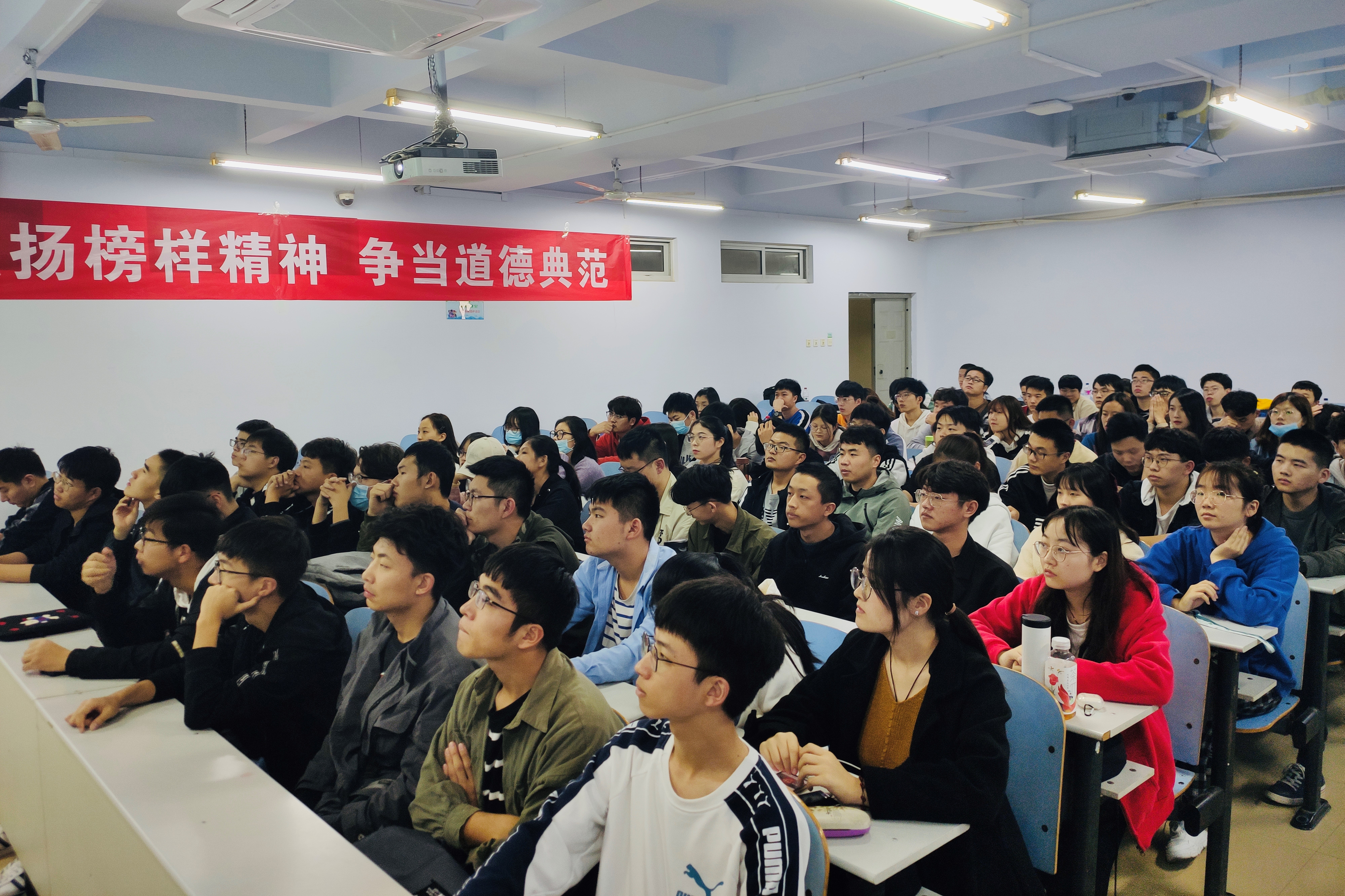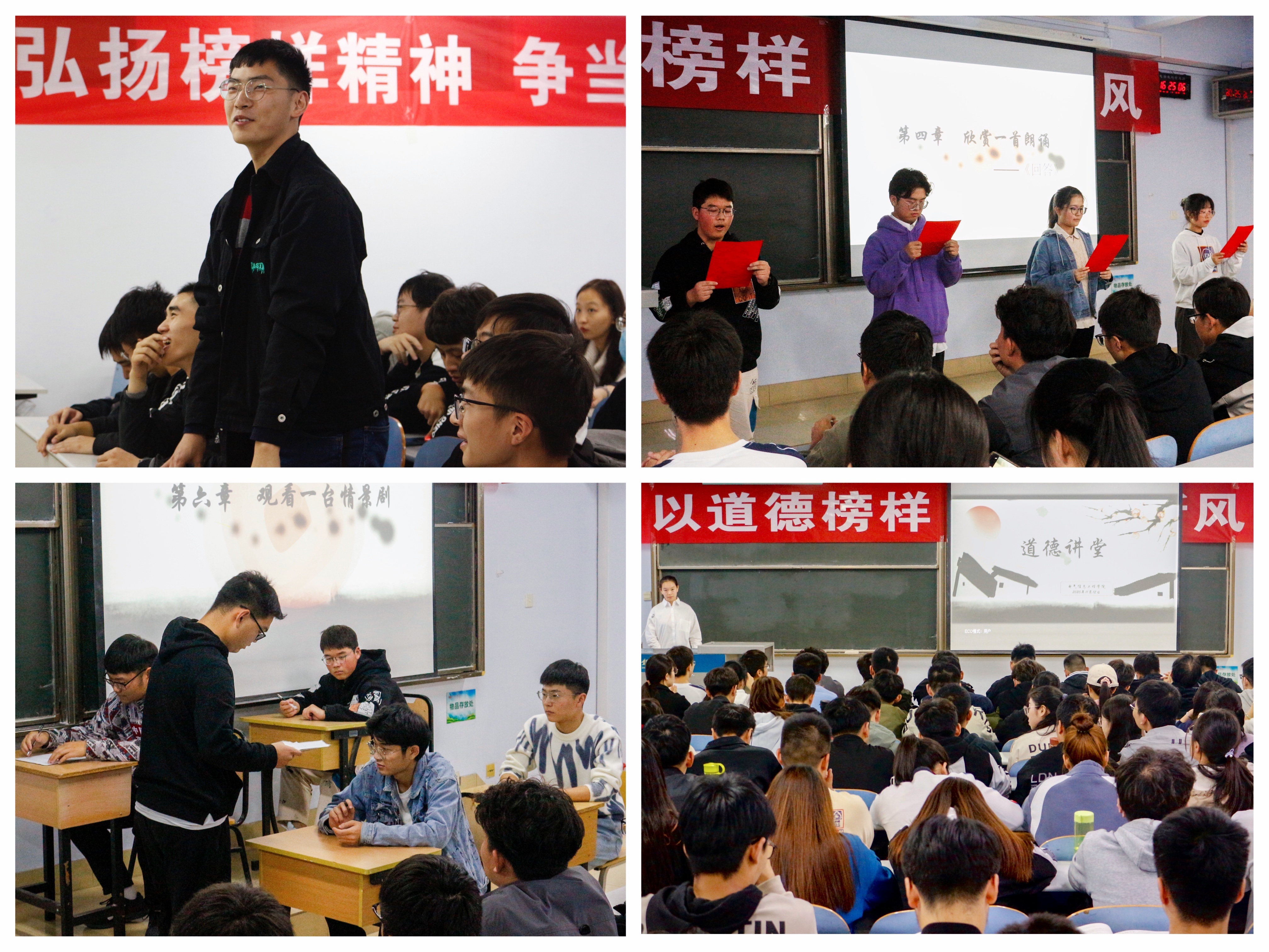 本次道德讲堂活动通过学习疫情期间涌现的先进模范事迹、欣赏歌曲、观赏诗文朗诵与情景剧表演、进行现场问答互动等多个环节,增强道德讲堂的吸引力和感染力,使道德讲堂融思想性、知识性、教育性于一体,引领学生用榜样的力量自我提升,培养学生的奉献服务意识,提高学生的社会责任感,倡导学生成为道德的传播者、实践者和受益者。
