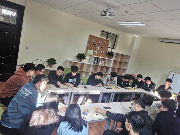 此次“传承棋道,以棋会友”活动主要进行象棋、五子棋、飞行棋共三个项目的比试。班委预先安排好桌号及各项目比赛负责人员,负责人进行管理记分和抽签,裁判由班委担任,保证比赛顺利地完成,同学们抽签决定对手,按号入座准备开始比赛。五子棋比赛分三轮进行,象棋比赛分四轮进行,采用轮回积分制,决出积分最高的四人争夺最终的前三名。比赛中选手们本着“切磋棋艺,以棋会友”的原则,选手们秉持“友谊第一,比赛第二”的精神,展示着良好的竞技状态,同学们都在这场无声的比赛中赛出了自己的风采,经过几轮激烈角逐,最终由三名同学分别取得了象棋、五子棋、飞行棋项目的冠军,大家纷纷表示在这次活动中不仅增强了自己的逻辑思维能力,还培养了同学们之间的感情。