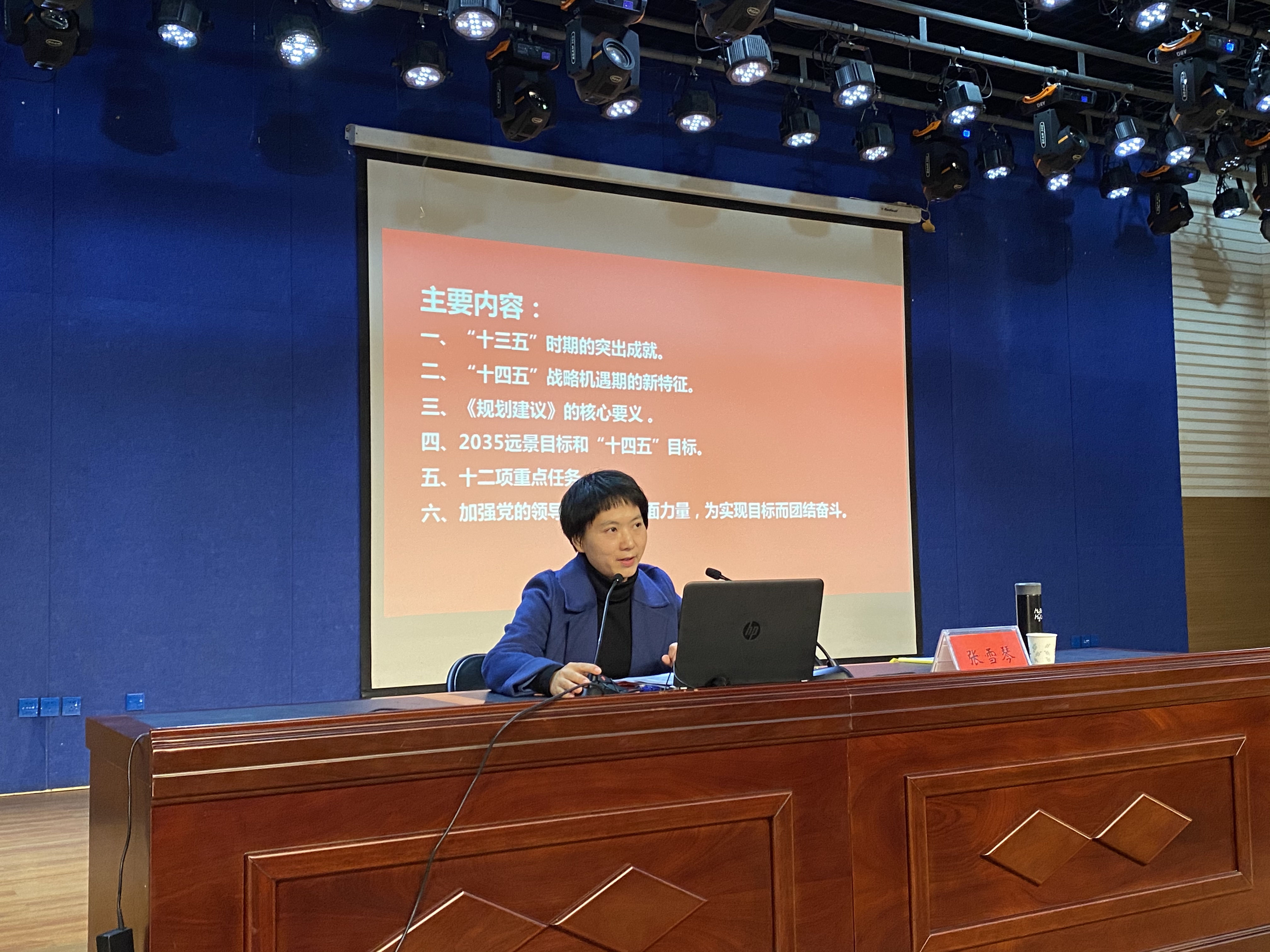 张雪琴副教授紧扣党的十九届五中全会精神的主题,系统回顾了我国“十三五”时期的突出成就,客观分析了“十四五”战略机遇期的新特征,深入阐释了《规划建议》的核心要义,详细解读了2035年远景目标和“十四五”规划目标,重点讲解了十二项重点任务,强调要加强党的全面领导、动员各方面力量为实现目标而团结奋斗。专题报告系统详尽、要点突出、概括准确,对LOL比分 师生学习贯彻党的十九届五中全会精神具有重要启发和指导作用。