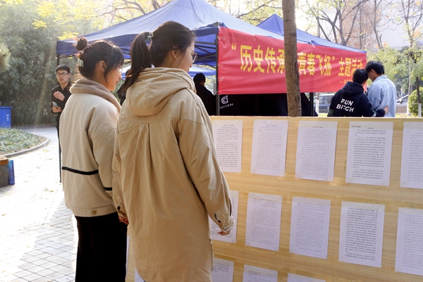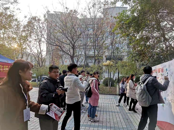 本次活动旨在使同学们深入学习贯彻习近平总书记关于党史、新中国史、改革开放史、社会主义发展史及新冠肺炎疫情防控工作的重要讲话和指示精神,向同学们传递一二·九爱国精神,传承先辈们勇于担当、无私奉献的精神,展现当代大学生积极向上、与祖国发展事业共奋进的责任与担当。活动中,工作人员向前来参加活动的同学们分发一二·九宣传页,结合“四史”为同学们讲解一二·九的历史背景、运动过程、主要影响等,并引导同学们到一二·九优秀征文展的展板前欣赏优秀征文,通过这些优秀征文,同学们对一二·九精神有了更深刻的理解和认识。