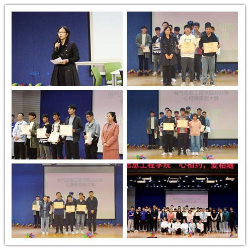 本次心理情景剧大赛以“心相约·爱相随”为主题,历经初赛剧本创作与选拔,最终共有12个班级进入决赛。比赛中,同学们准备充分,精彩演绎,用欢笑与泪水诠释了在学习、生活、爱情、友情中的懵懂与困惑,闪现出现实生活中的亮点,映射出当代大学生常见的心理健康问题,仿佛让人身处其境,突出主题又不失趣味,使观众们在观看时产生强烈共鸣,受到很大触动,起到了良好的心理健康教育效果,赢得了热烈掌声。经过一番激烈的角逐,自动化2002班的《疫情下的温暖》、电气工程及其自动化1903班的《聚餐风波》并列荣获一等奖;电气工程及其自动化1901班的《手相牵,心相连》、轨道信号2001班的《我的大学》荣获二等奖;智能电网1902班的《青春环游记》、电气工程及其自动化2003班的《转身去拥抱爱》、自动化2001班的《陪你走》荣获三等奖。