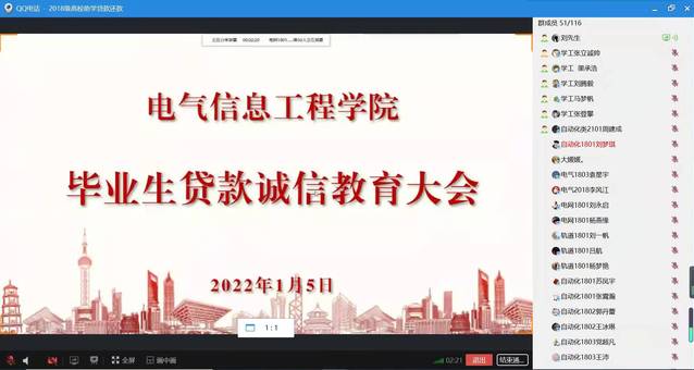 在线上举办2022届贷款毕业生诚信教育大会。负责资助工作的刘丰阳老师和2022届贷款毕业生参加了此次会议。