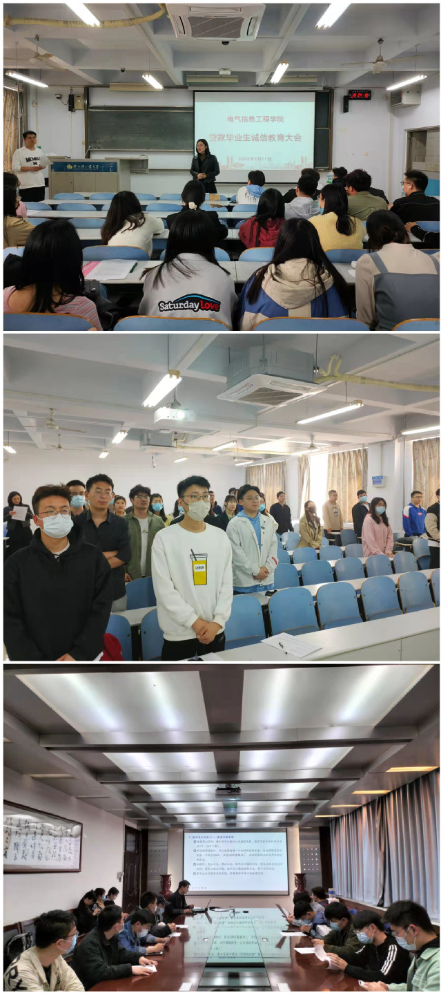 2022年3月11日、15日,LOL比分 分别在教三楼402、西二楼301召开高校助学贷款毕业生诚信教育暨诚信宣誓大会。LOL比分 党委副书记万慧杰,辅导员刘丰阳老师,2022届贷款毕业生参与。