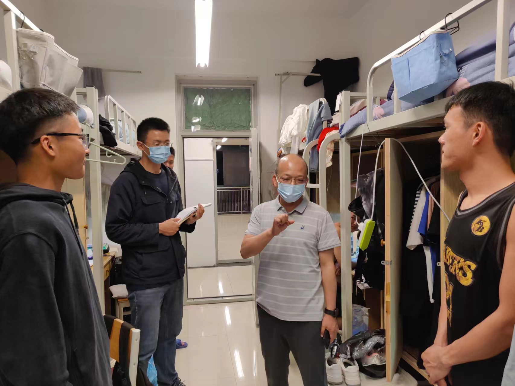 领导班子成员带领辅导员深入学生宿舍开展安全卫生全面检查。