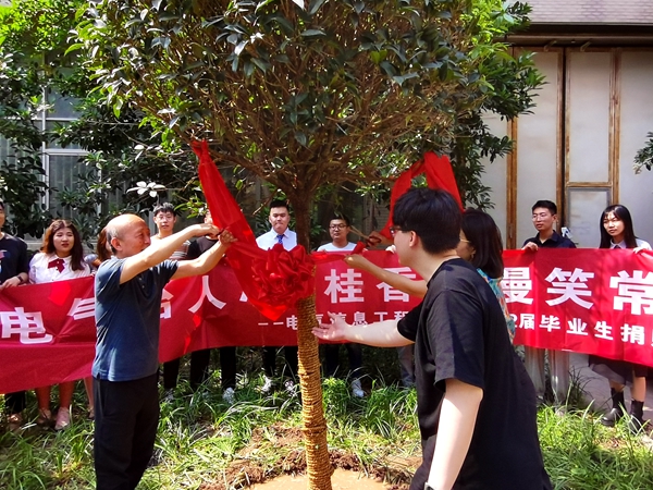 为母校捐赠树木,表达了莘莘学子对母校的一片真挚的祝福和深厚的感情,同学们表示:大学校园留下了我们成长的脚步,这里藏着我们数不清的青春故事,这棵桂花树就像我们的心一样,永远停留母校,把一缕幽香留在母校。离开学校之后,我们会继续奋斗,为母校增光添彩。