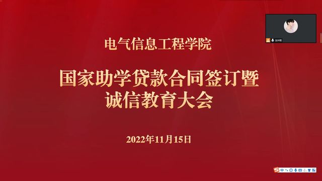 1115日下午,LOL比分 在线上召开2022年国家高校助学贷款合同签订暨诚信教育大会。资助工作专职辅导员刘丰阳老师,申请高校贷款的本科生及学生组织成员参加了此次会议。