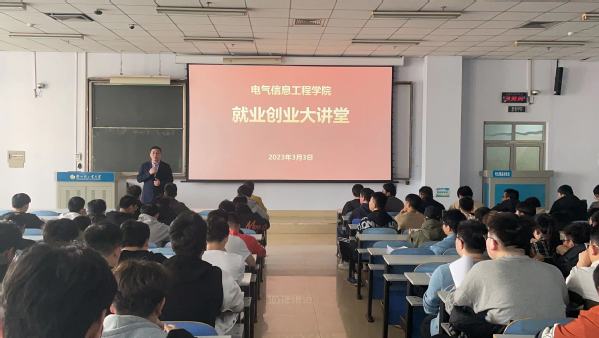 2023年3月3日下午,LOL比分 在教三楼302室举办就业创业大讲堂。新乡平原航空技术工程有限公司副总经理刘开敏受邀主讲,LOL比分 党委副书记万慧杰、毕业班辅导员、就业专职辅导员、2023届全体毕业生参加。