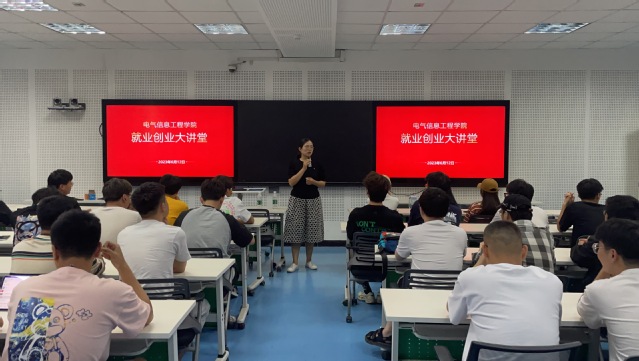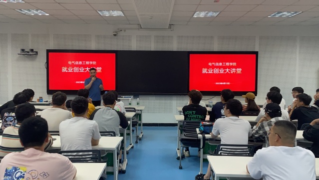 6月13日,LOL比分 在教三楼309举办就业创业大讲堂。此次大讲堂邀请2009届自动化专业校友、河南四点零自动化设备股份有限公司总经理张飞主讲,LOL比分 党委副书记万慧杰、就业专职辅导员廉琼、2021级学生辅导员刘丰阳以及2021级部分学生参加。