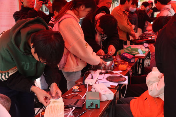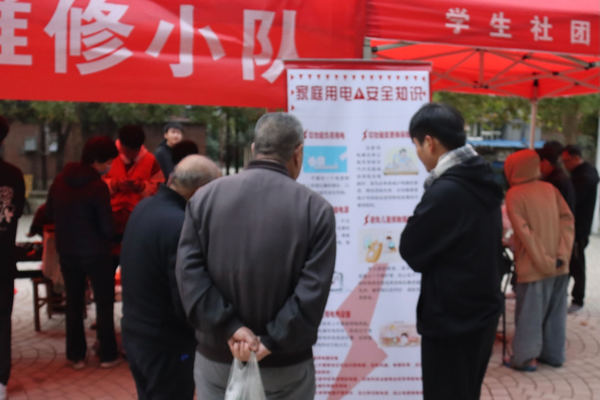 下午3时许,在高鹏飞老师带领下,志愿服务师生一行来到社区广场,摆开桌凳,打开工具箱,开始收集老旧、损坏的家用电器。志愿者有条不紊地对故障家电进行登记,贴标签、标注姓名、联系方式等信息。大家运用专业知识、技能将社区居民送来的烧水壶、电风扇、电饭煲、吹风机、破壁机等小家电进行维修。同时,还向居民群众介绍家用电器安全使用规则及节电小常识,避免因使用不当造成伤害及损失。在3个小时的活动中,志愿服务师生维修各种家用小电器近百件,同学们热诚的服务、专业的态度和精湛的技术获得了社区居民的一致认可和感谢。