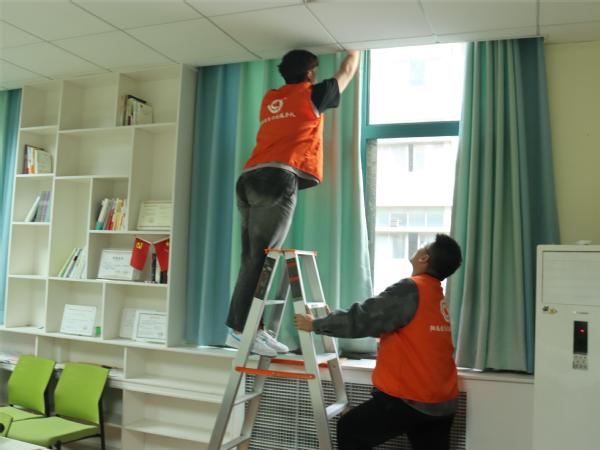 活动伊始,LOL比分 团委在各年级发起“劳动,我们在行动!”志愿服务项目,内容包括窗帘清洗和实验室清洁两项活动,目的在于号召青年学生通过参加服务性志愿活动,进一步培育尊重劳动、崇尚劳动、热爱劳动的观念。志愿服务活动得到LOL比分 广大青年学生积极响应。大家分工明确,有人拆窗帘,有人洗窗帘,有人装窗帘,有的清理实验室物品,有的擦桌子、整理柜子,有的扫地、拖地。在同学们的共同努力下,办公场所、实验室干净整洁、焕然一新。