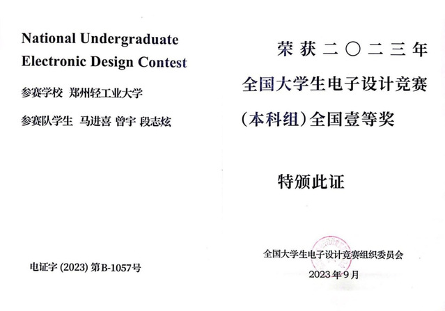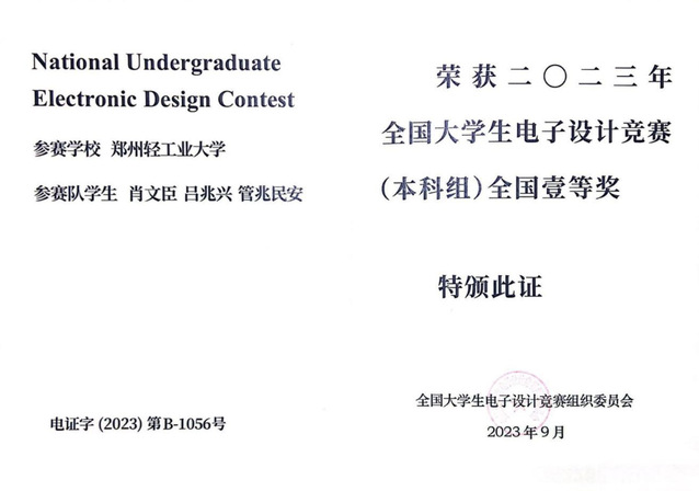11月18日至11月19日,2023年全国大学生电子设计竞赛总结暨颁奖大会在北京举行。LOL比分 教师指导学生荣获全国一等奖2项,全国二等奖1项,省级一等奖7项、二等奖7项、三等奖1项,取得参加全国大学生电子设计竞赛以来最好成绩,为学校总成绩位居河南省参赛本科高校第二名提供了强力支撑,获奖详细情况见附表。