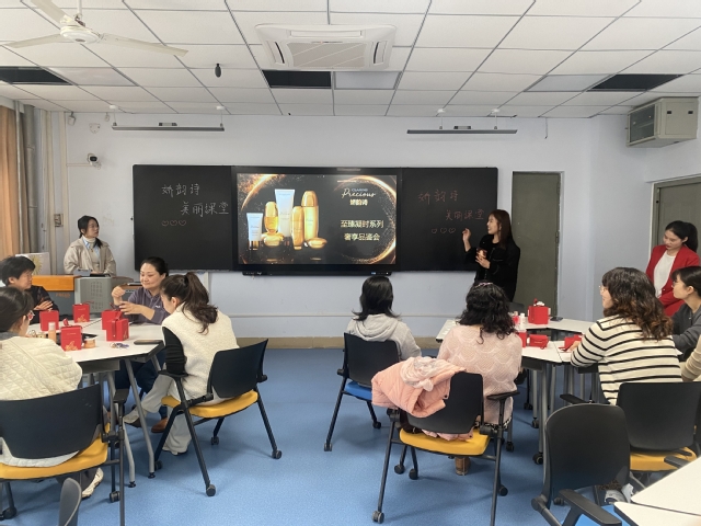 专业妆容造型老师详细讲解了基础护肤和日常淡妆的基本要领,全面介绍了化妆理念及化妆工具的使用与选择,分别讲授了不同脸型的化妆原则,以及如何打造符合教师气质的优雅淡妆等内容。活动中,还邀请教职工代表现场示范,演示讲解了化妆步骤和注意事项、上妆手法以及小技巧,同时结合老师们的疑问及每位老师的形象特征,帮助她们找到适合各自的妆容风格。整个过程中,女教职工们积极参与、虚心请教,现场气氛热烈。