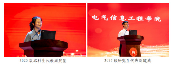 本科、硕士研究生新生代表周宸萱、周建成先后发言,表达了对大学生活的憧憬和对专业学习、科研探索的坚定信心。